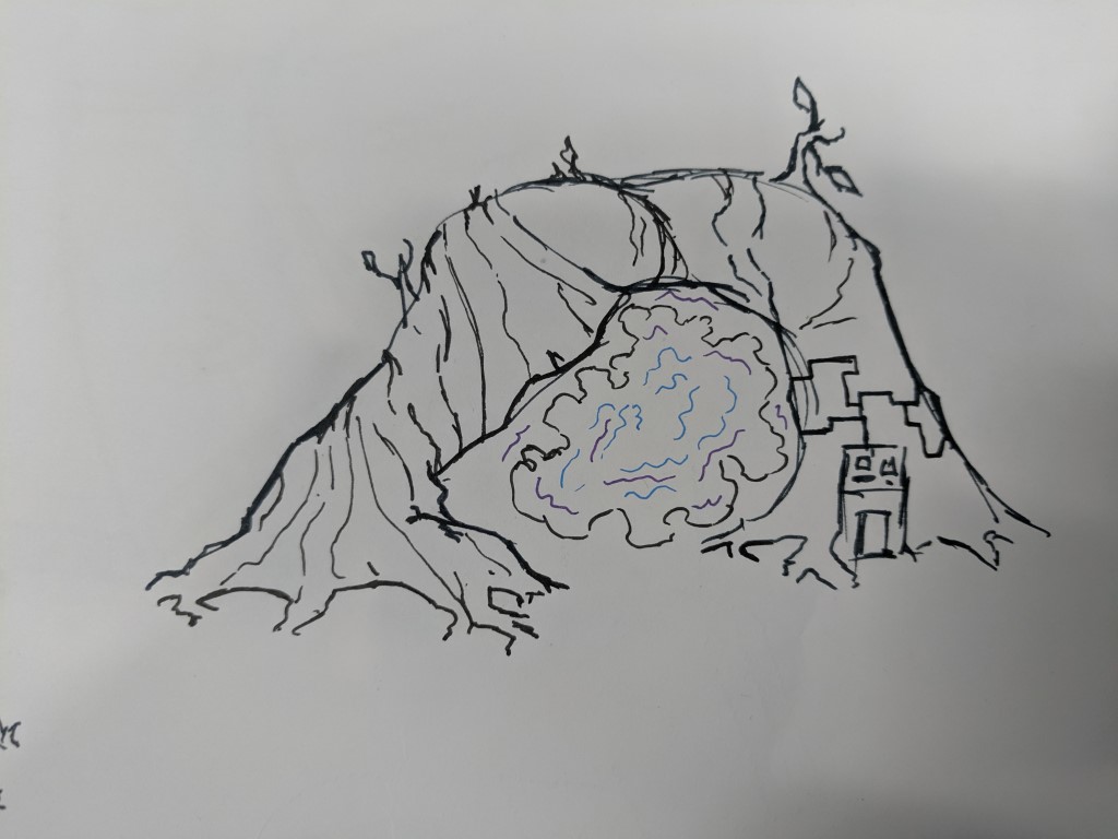 I have included evidence photos of my concept art that I have produced through week 2 of our class project. At the beginning of the second week I was requested to work on further developing building concepts so that some of our modelers could work on other assets, rather than having everyone focus on environment assets at once. To continue further developing building concepts I first went back to my thumbnail sketches that I had created and asked people which one they liked most, which happened to be the “Treepees” that I designed mainly due to the uniqueness of them and the potential challenge that they could be to model. I created the concepts traditionally with my sketch book and mechanical pencil and I was really impressed with the final result. The treepee concepts had two designs for variety, both tent and tree wise.